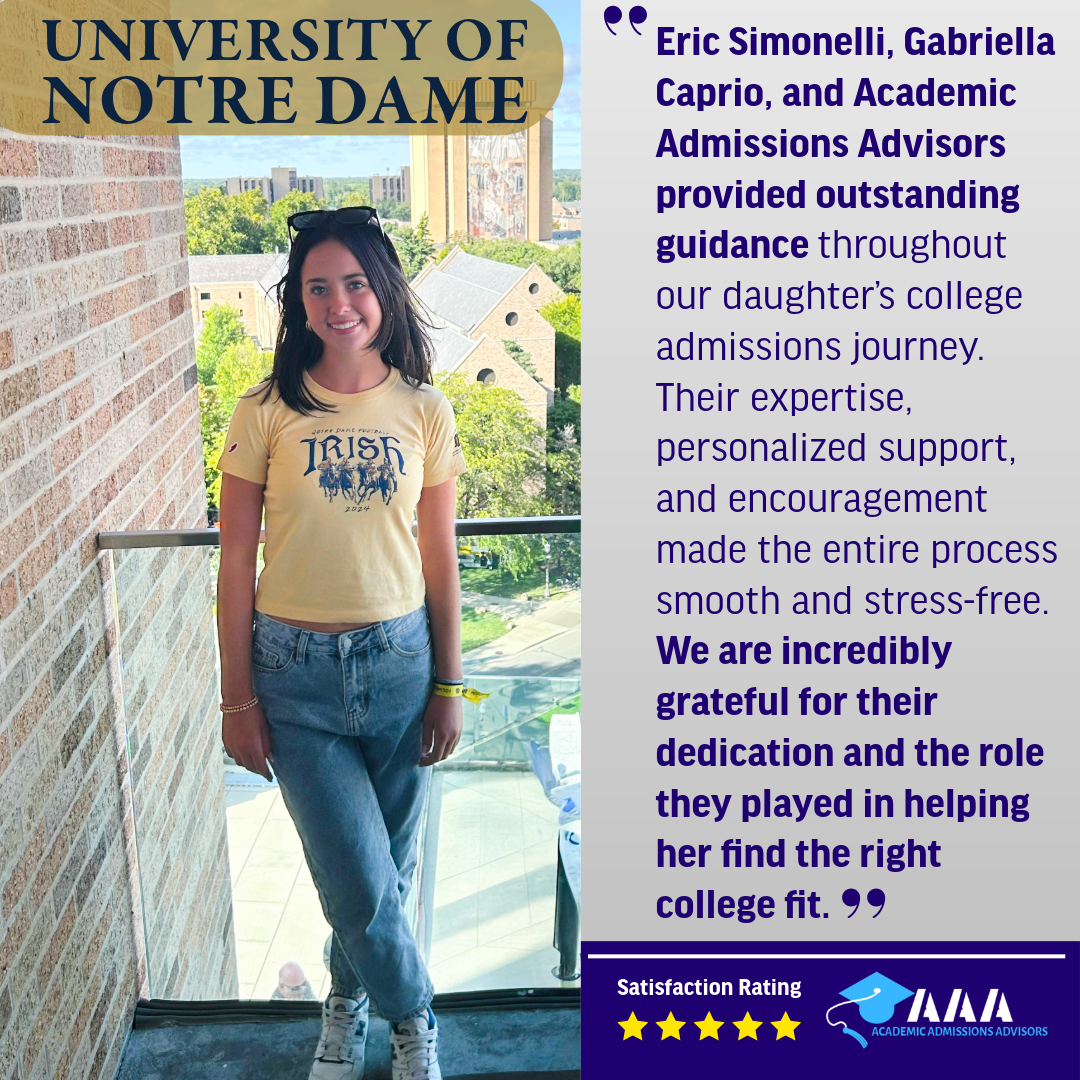 “Eric Simonelli, Gabriella Caprio, and Academic Admissions Advisors provided outstanding guidance throughout our daughter’s college admissions journey. Their expertise, personalized support, and encouragement made the entire process smooth and stress-free. We are incredibly grateful for their dedication and the role they played in helping her find the right college fit.”